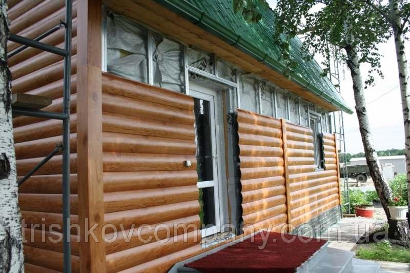 Металосайдинг має вигляд срубу з дерева.