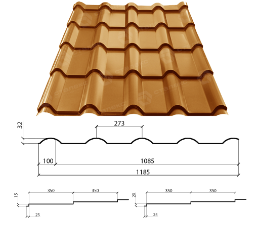 Металочерепиця “AFINA” 0,50 мм від виробника “Сталекс Профі “PEMA RAL 8004 Німеччина.