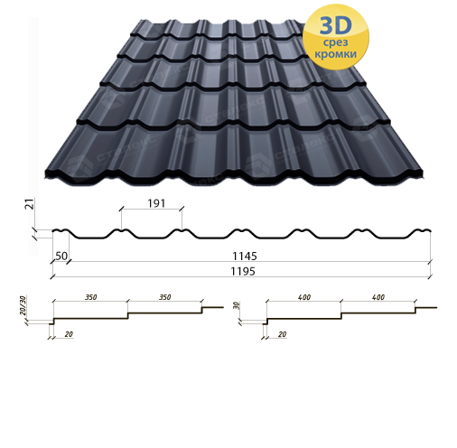 Ширина аркуша металочерепиці 1195 мм.
