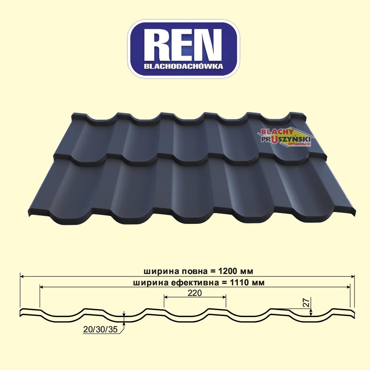 Купить в Киеве и Украине Металочерепиця REN 0,5 мм “Blachy Pruszynski” ( Прушинськи )
