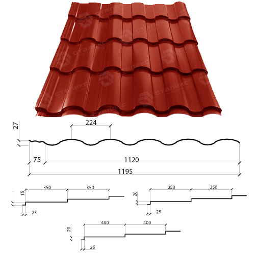 Металева черепиця “VALENCIA” 0,45 мм PEMA RAL 3011 від виробника “Сталекс Профі” Optima Steel.