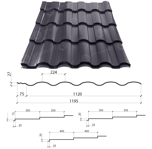 Металева черепиця “Валенсія” виробництва заводу виробника Сталекс Профі.