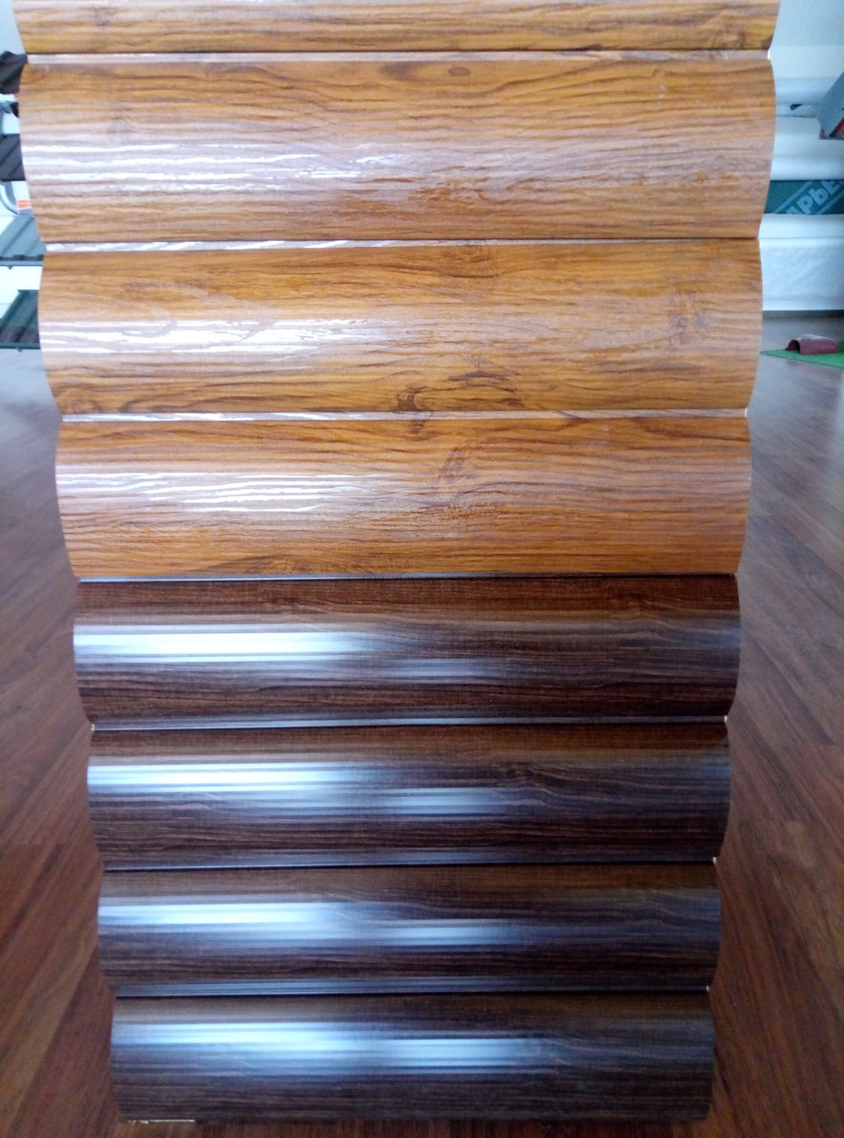 Блок-хаус Printech з імітацією металу під дерево — колір — марокканський горіх 0,4 мм Китайський метал.
