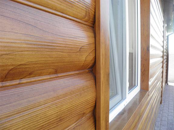 колір металосайдинга золотий дуб Після монтажу фасад будівлі по зовнішньому вигляду стає схожим на класичний колодчастий сруб.