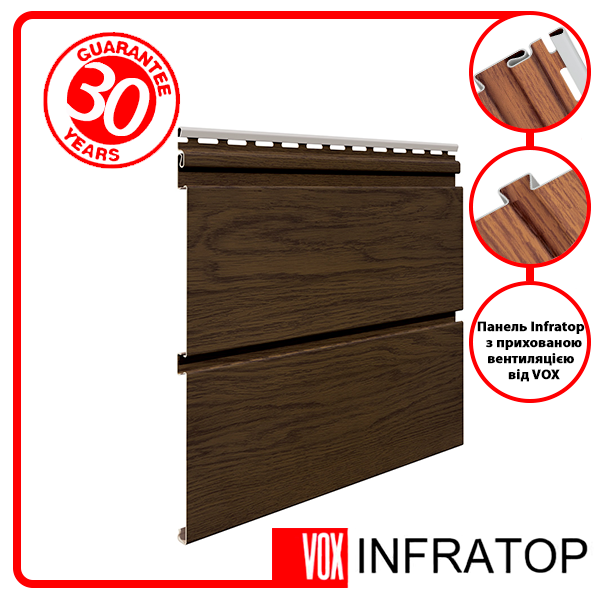 Гарантия: 30 років; Довжина м.: 3; Єлемент системи: Панель; Матеріал: ПВХ; Область применения : Неперевершене рішення з прихованою системою вентиляції для підшива підпокрівельного простору; Корисна площа:.9; Преимущества: Карнизна ПВХ підшива з прихованими перфораційними отворами. Такий софіт виглядає гарманічно і дозволяє належним чином відводити вологу і гарантувати циркуляцію повітря.; Країна виробництва: Польща; Цвет: Горіх; Ширина 1 м.: .3