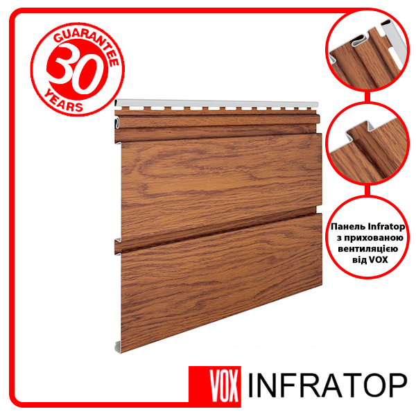 Гарантия: 30 років; Довжина м.: 3; Єлемент системи: Панель; Матеріал: ПВХ; Область применения : Неперевершене рішення з прихованою системою вентиляції для підшива підпокрівельного простору; Корисна площа:.9; Преимущества: Карнизна ПВХ підшива з прихованими перфораційними отворами. Такий софіт виглядає гарманічно і дозволяє належним чином відводити вологу і гарантувати циркуляцію повітря.; Країна виробництва: Польща; Цвет: Золотий дуб; Ширина 1 м.: .3