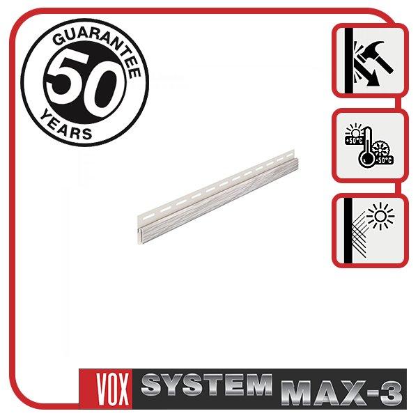 Гарантия: 50 років; Група пального: Г2; Довжина, мм: 3810; Описание бренда: НАЙКРАЩЕ ДИЗАЙНЕРСЬКЕ РІШЕННЯ ДЛЯ ФАСАДУ ВАШОГО БУДИНКУ! – КРАСА ДЕРЕВА Компанія VOX відсканувала зруб дерева, щоб за допомогою запатентованої технології термодруку точно перенести фактуру деревини на фасадну панель – МІЦНІСТЬ МЕТАЛУ Інноваційна, запатентована технологія потрійний екструзії дозволяє фасадним панелям витримувати дуже сильні удари – 13,5J (джоуль), що відповідає ударам відбійного молотка призначеного для руйнування бетону. – ПРАКТИЧНІСТЬ ПВХ Фасадні панелі легкі, стійкі до гниття, іржі, корозії, комах. Фасадні панелі System MAX-3 використовуються в якості фінального-облицювального шару в системі навісного вентильованого фасаду, що дозволяє надійно і якісно утеплити фасад будинку. Гарантія – 50 років ; Описание планки: Навісна планка – призначена для відводу небажаної вологи від цоколя; Виробник: VOX; Система: System MAX-3; Фактура: Дерево; Цвет: Білий; Елементи системи: Планка навіяна