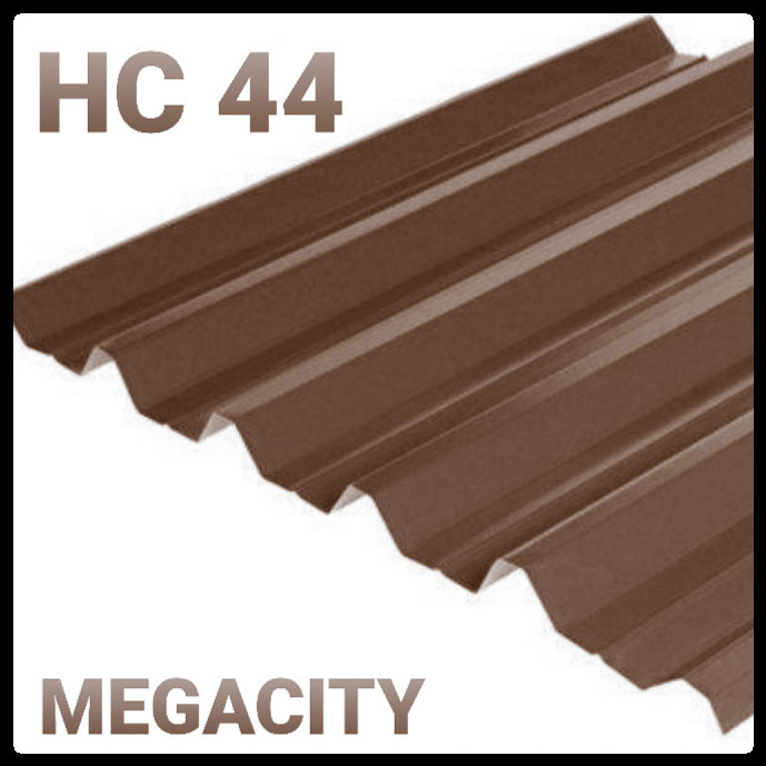 Профнактил НС-44 RAL 8017 МАТ 0.45 такий, що несе, — це профнактил із полімерним покриттям поліестер матовий, коричневого кольору (за класифікацією RAL — 8017, у народі його називають “шоколад”), товщина металу 0,45 мм.