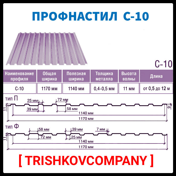 Профнастил С – 10 ZN Модуль Україна 0.5 мм