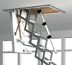 Roto Exclusiv — Чердачна драбина ножичного типу, виготовлена з дуже міцного, і легкого спеціального алюмінієвого сплаву методом лиття. Глибина ступеня 14 см.