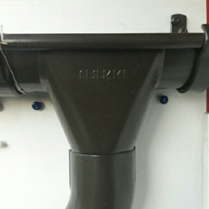 Для розведення води використовують тройники. На кінці труби монтують слив. Жолоб підвішується до краю даху або до спеціальної дошки з допомогою кронштейнів (гачків), а труба кріпиться до стіні за допомогою хомутів.